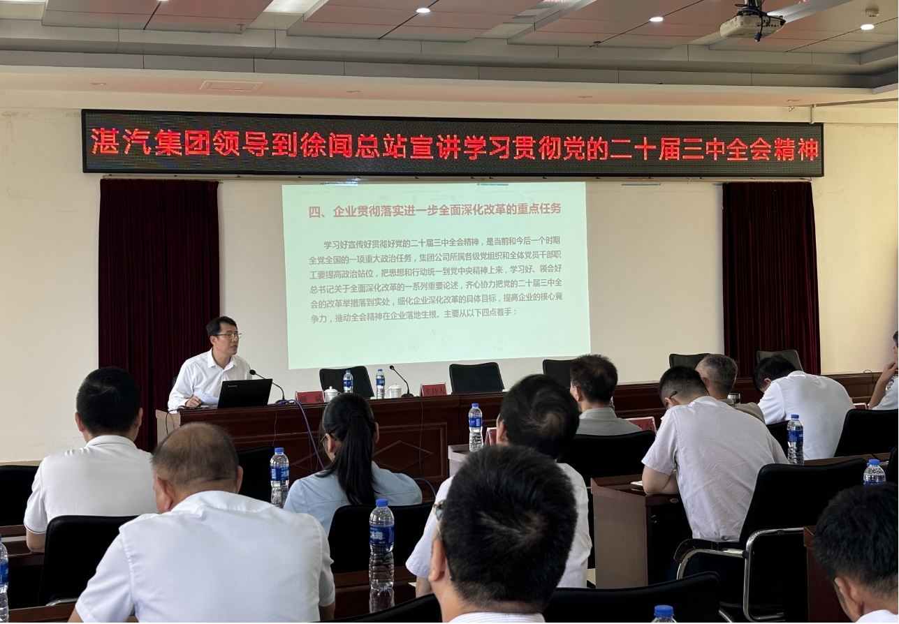 (圖為湛汽集團(tuán)黨委開展“黨的二十屆三中全會(huì)精神”宣講報(bào)告現(xiàn)場(chǎng))