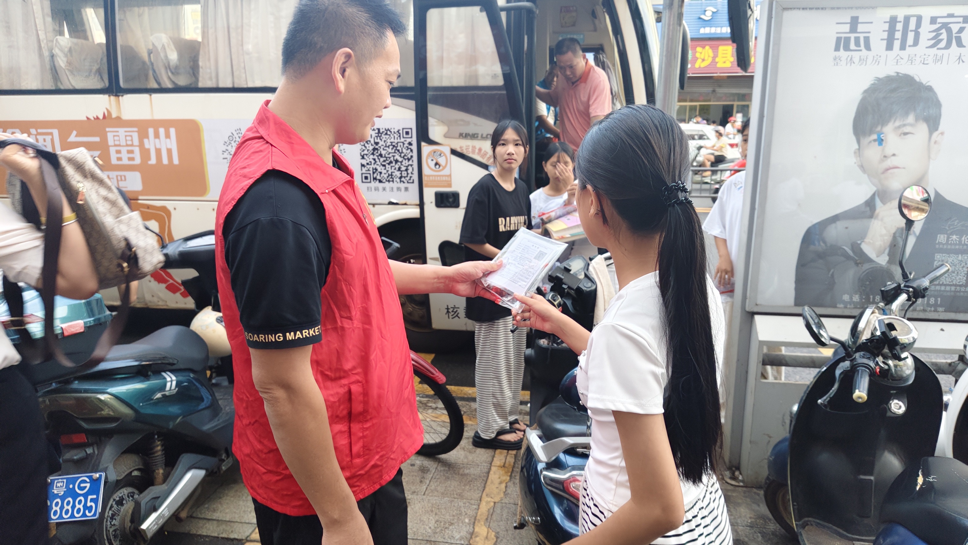 6月30日中考首日,徐聞總站接送邁陳二中考生前往徐聞縣第二中學考點時,當考生們陸續下車入場后,一名搭乘送考2號車的考生突然發現準考證遺落車內,此時開考在即,焦急得手足無措。