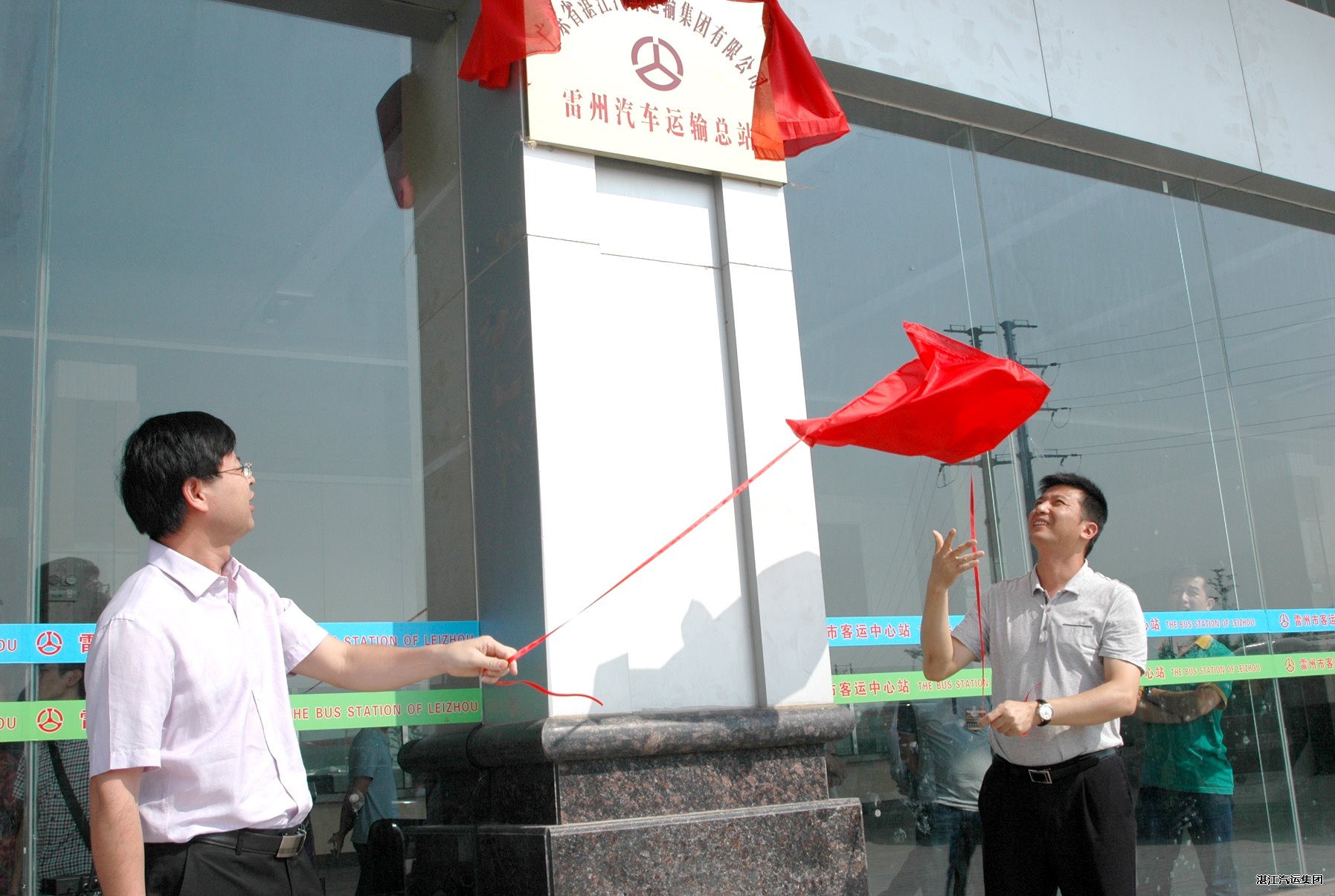 集團(tuán)公司總經(jīng)理吳定義(左)、雷州市委常委梁忠興(右)為雷州總站新站揭牌。