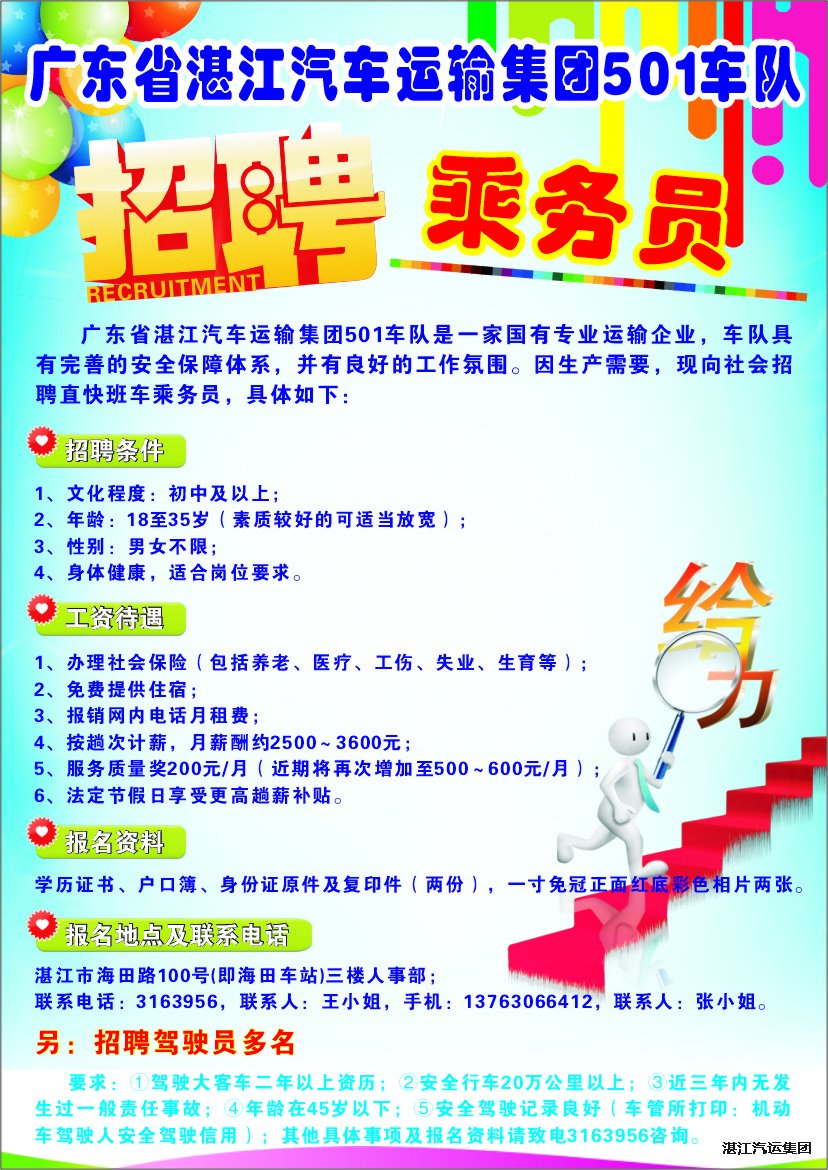 湛江汽車運輸集團公司501車隊2014年招聘乘務員和駕駛員